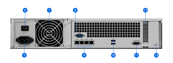 RS2418+/RS2418RP+ 配備一個(gè) PCIe 3.0 插槽,可選擇安裝 M.2 SSD 轉(zhuǎn)接卡或 10GbE 以太網(wǎng)絡(luò)卡,提升系統(tǒng)快取 IOPS以及迅捷的數(shù)據(jù)傳輸 。